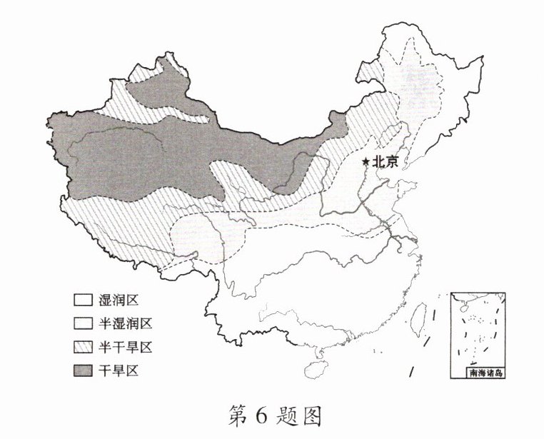 6.[2023.菏泽]黄河和长江都被誉为中华民族的“母亲河”。如表所示黄河与长江概况,如图为中国干湿地区的划分图。阅读图文材料,回答下列问题。