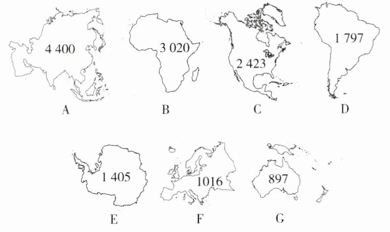 (1)七大洲名称:世界上七大洲面积由大到小依次是A________、B非洲、C北美洲、D________、E南极洲、F________、G大洋洲。(口诀:亚非北南美,南极欧大洋)