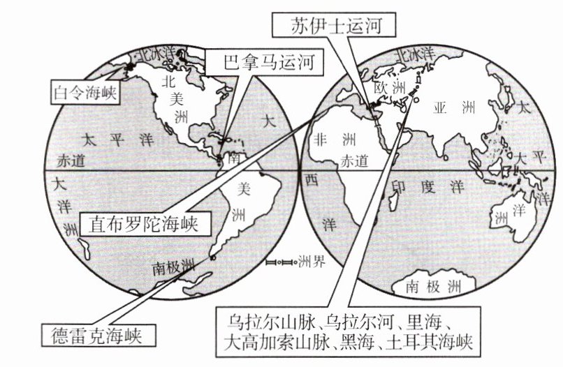 (2)乌拉尔山脉—乌拉尔河—里海—大高加索山脉—黑海—土耳其海峡