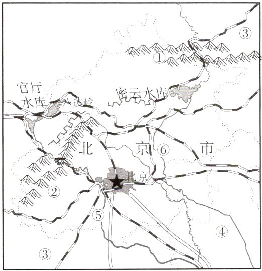 (1)北京位于______平原北缘,北部是①______山脉,西部是②太行山脉余脉______,与③河北省、④______市相邻。