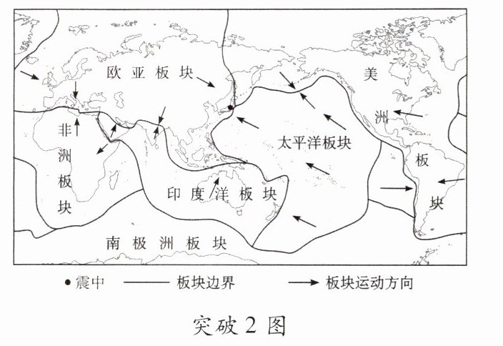 突破2[2024·临沂]2024年1月1日,在日本西海岸发生了7.6级地震。读六大板块分布示意图,日本地震频发的主要原因是 ( )