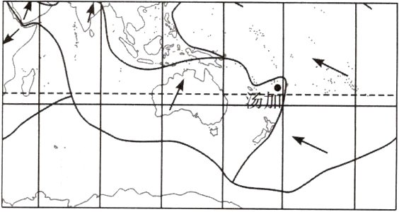 [2022·菏泽]2022年1月,岛国汤加(20.57°S,175.38°W)境内海底火山剧烈喷发,卫星探测显示,火山灰到达了30千米的高度。读汤加位置示意图,完成5~6题。