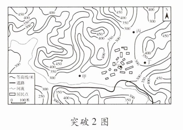 突破1 [2023·雅安]读某区域等高线分布示意图,完成1~2题。