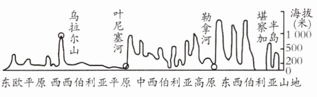 (3)地形地势:西西伯利亚平原 东欧平原 东高西低