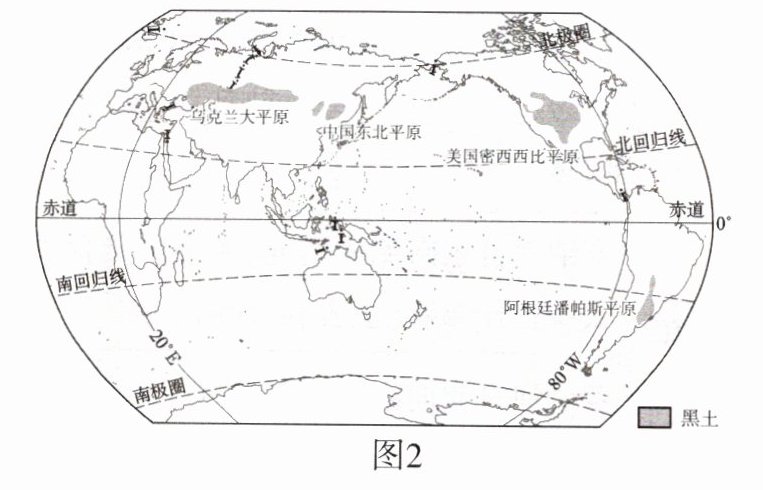 11. [2022·菏泽]近年来,俄罗斯已成为世界最大的小麦出口国,向世界多个国家出口小麦。我国主要进口俄罗斯的优质春小麦,这种春小麦出粉率和蛋白质的含量都较高。俄罗斯春小麦的种植需要土层深厚,对日照时长和温度也有较高的要求。图1为俄罗斯小麦产区分布图,图2为世界四大黑土区分布图,结合图文材料,回答下列各题。