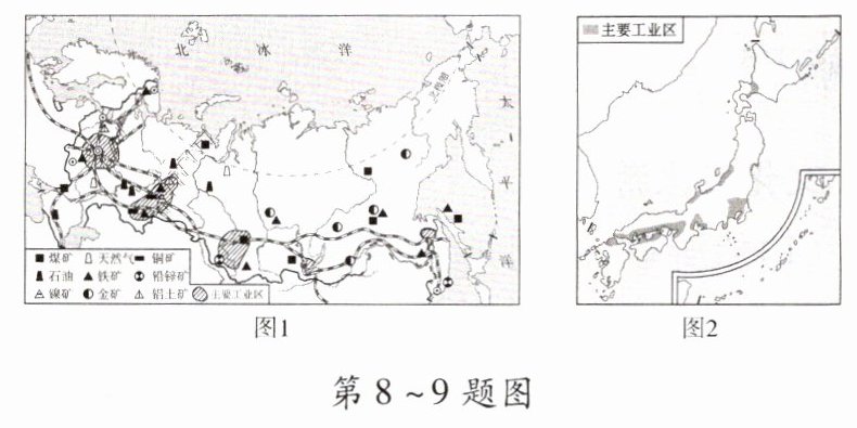 [2024·菏泽]图1为俄罗斯简图,图2为日本局部简图。读图,完成8~9题。