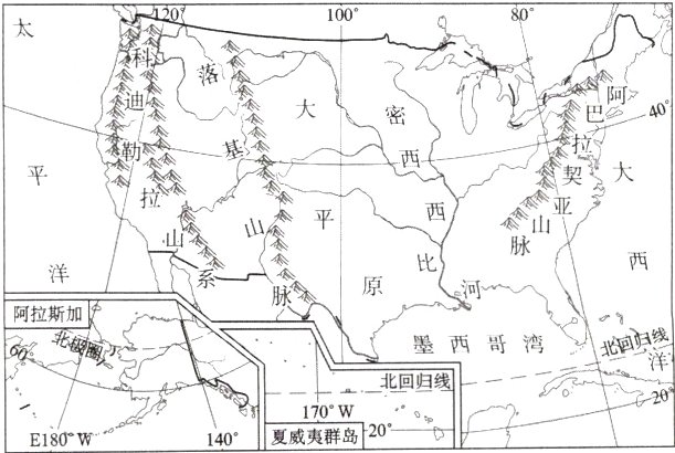 位置 地跨寒、温、热三带,主要位于________带,东临________洋,西临__________洋,北(阿拉斯加州)临____________洋,南临__________湾,西南与________毗邻,北与__________接壤