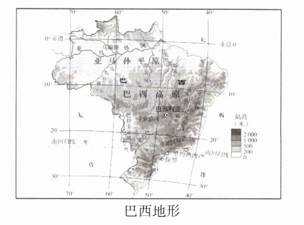 (3)根据三个国家的地理位置和地形分析,俄罗斯与美国分布面积最广的气候类型均为______,而巴西缺少该气候类型,其主要影响因素是______。