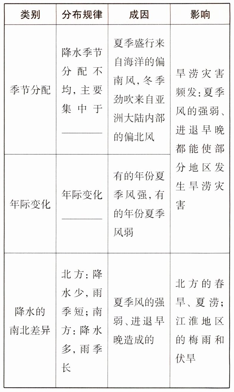 (1)从东南沿海地区向西北内陆递减 夏季 大