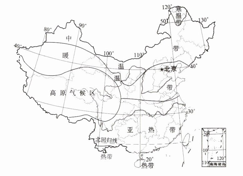根据气温的南北差异,结合农业生产实际,以活动积温为主要指标,将我国分为“五带一区”。
