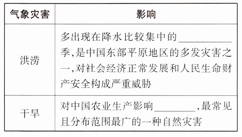 寒潮 秋末、冬季和初春 霜冻 梅雨 江淮流域7-8春季 北方地区 西北地区