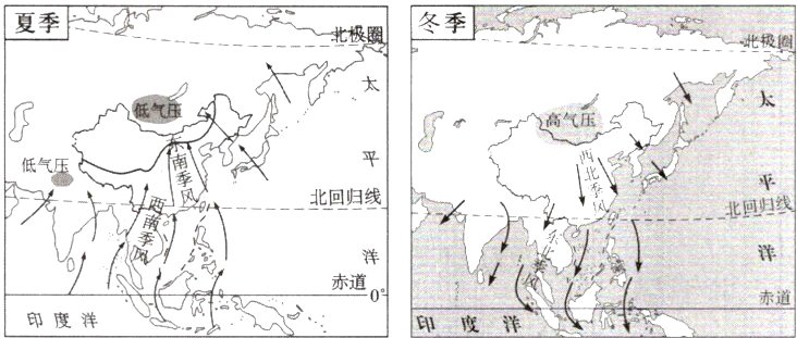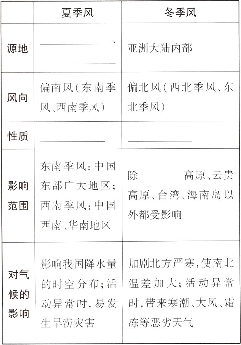 (2)分界线:习惯上以____________________阴山山脉−贺兰山−巴颜喀拉山脉−冈底斯山脉以东一线为界,把中国划分为季风区和非季风区
