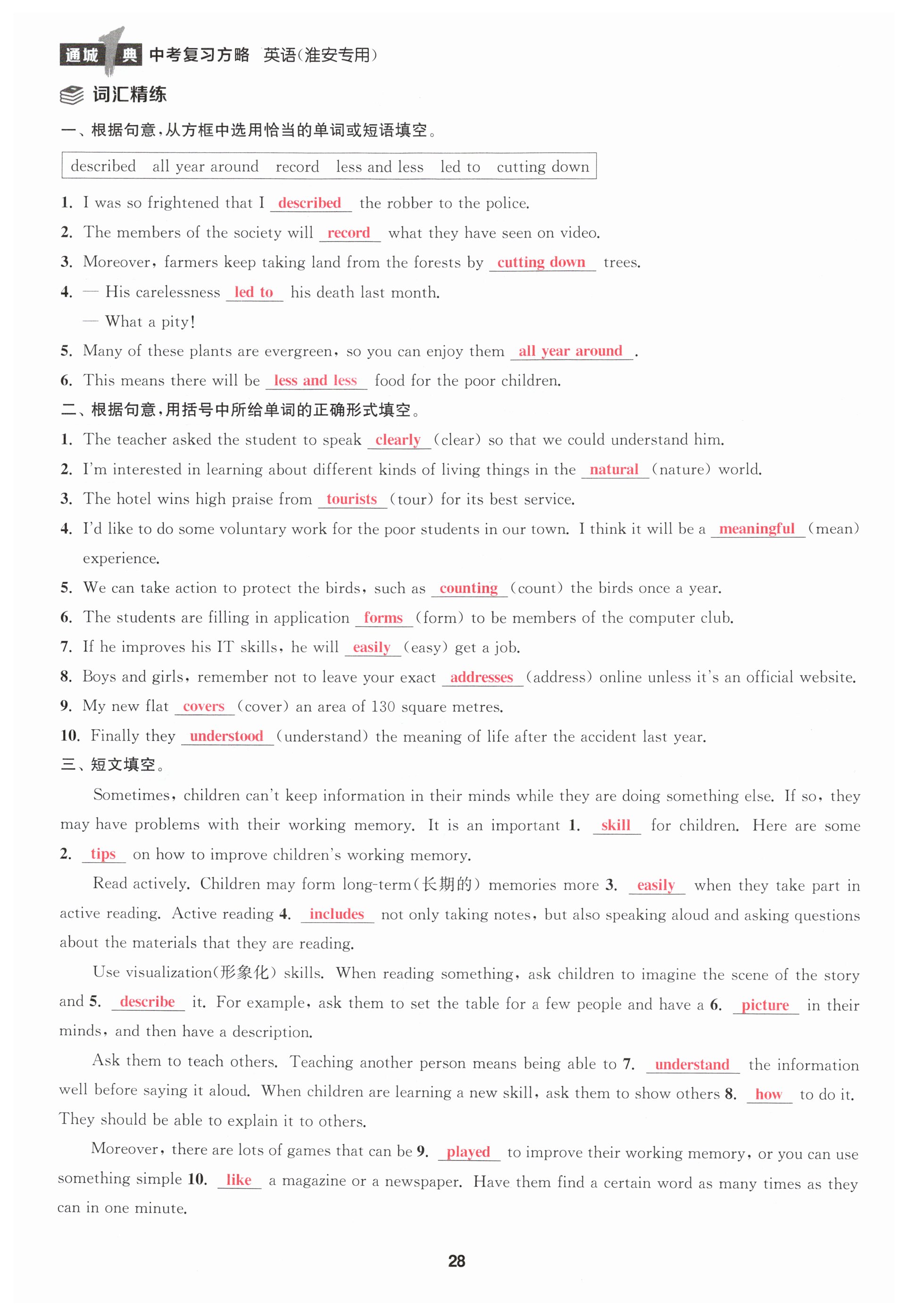 注:目前有些书本章节名称可能整理的还不是很完善,但都是按照顺序排列的,请同学们按照顺序仔细查找。练习册 2025年通城1典中考复习方略英语淮安专版 答案主要是用来给同学们做完题方便对答案用的,请勿直接抄袭。
