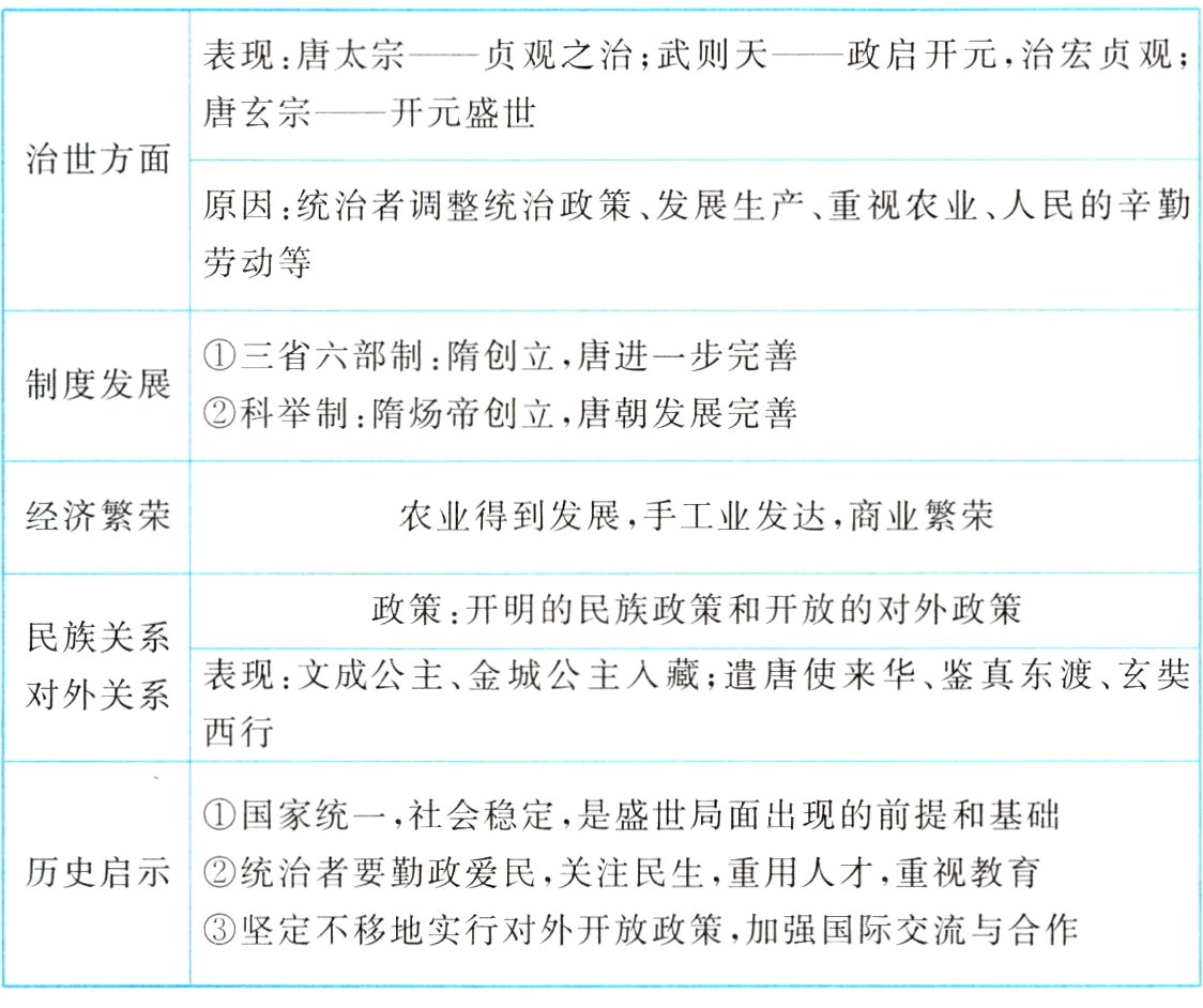 表现:唐太宗——贞观之治;武则天——政启开元,治宏贞观;唐玄宗——开元盛世