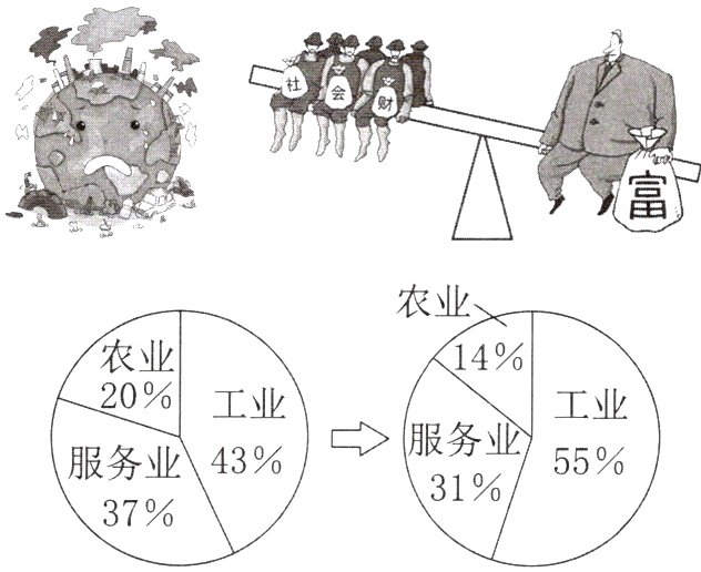 D 解析:图片涉及的内容是环境污染、贫富分化和经济结构变化,这些变化均是工业革命带来的。故选D项。