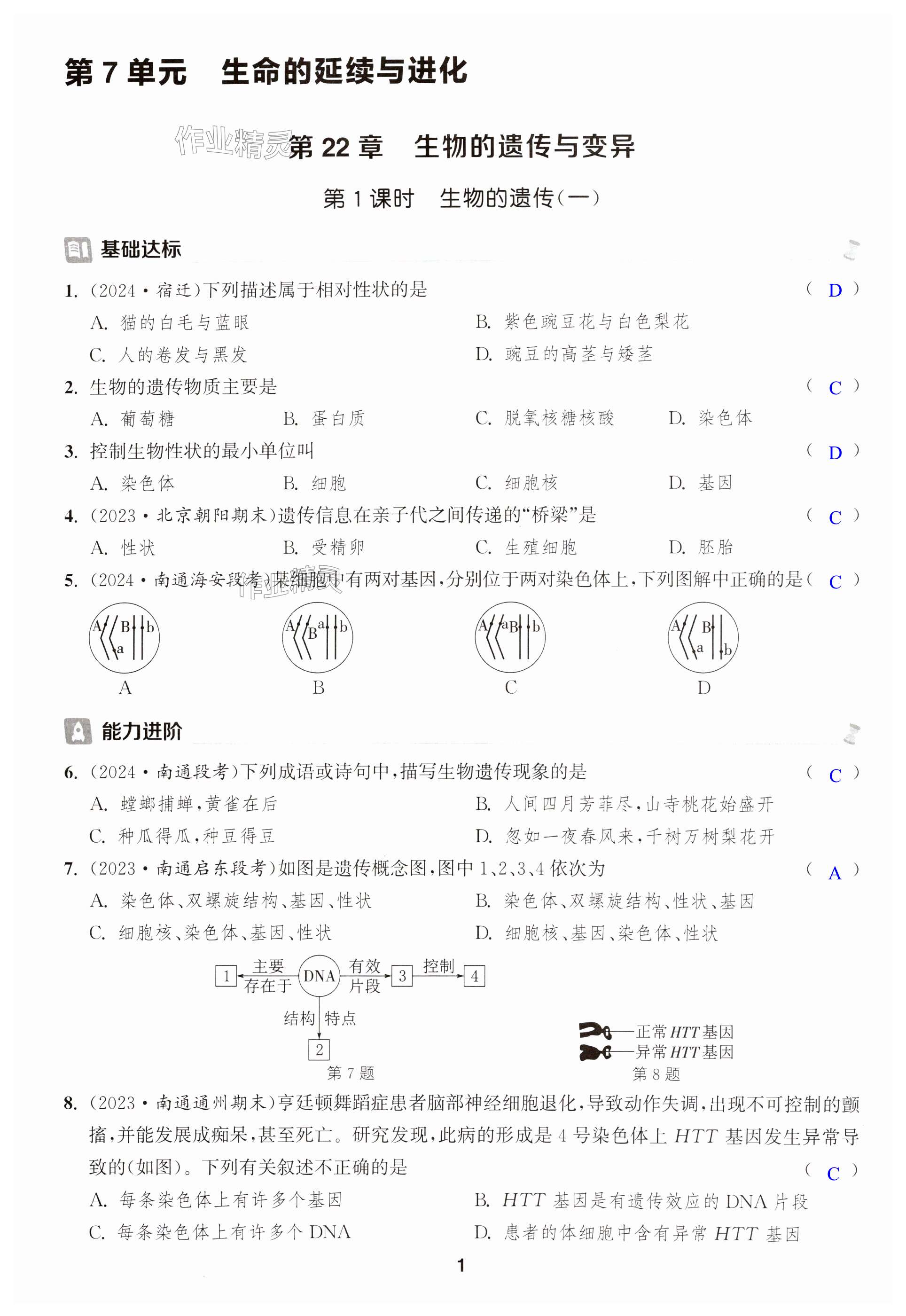 注:目前有些书本章节名称可能整理的还不是很完善,但都是按照顺序排列的,请同学们按照顺序仔细查找。练习册 2025年金钥匙课时学案作业本八年级生物下册苏科版 答案主要是用来给同学们做完题方便对答案用的,请勿直接抄袭。