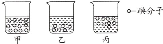 4. 甲、乙、丙三位同学分别画出下面的示意图,表示溶液中碘分子的分布(汽油分子没有画出)。