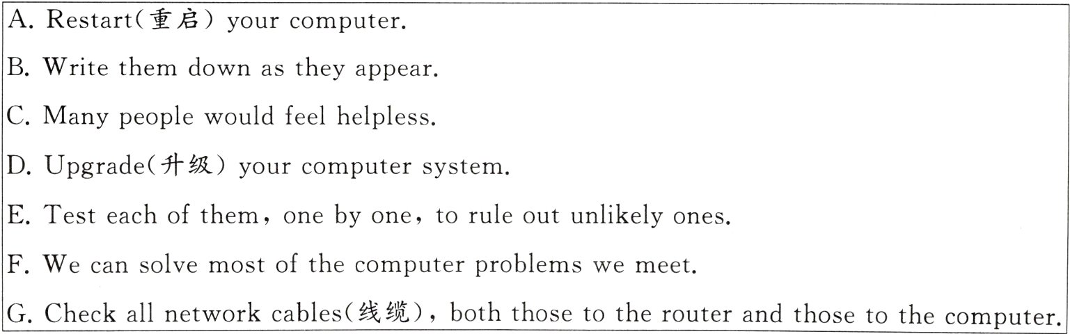 [文章大意]本文是一篇说明文,主要讲述了如果电脑出现故障应该如何处理,并在文章中讲解了一些基础的、有效的方法。