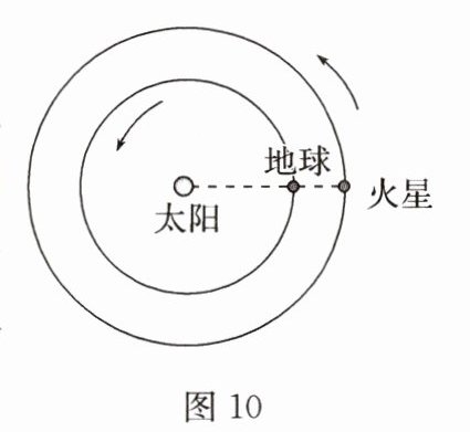 例3 (2023·湖北卷,2)2022年12月8日,地球恰好运运行到火星和太阳之间,且三者几乎排成一条直线,此现象被称为“火星冲日”。火星和地球几乎在同一平面内沿同一方向绕太阳做圆周运动,火星与地球的公转轨道半径之比约为3∶2,如图10所示。根据以上信息可以得出 ( )