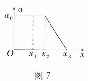 3.(2024·安徽亳州模拟)放在水平面上的物体,在水平力F作用下开始运动,以物体静止时的位置为坐标原点,力F的方向为正方向建立x轴,物体的加速度随位移的变化图像如图7所示。下列说法中正确的是( )
