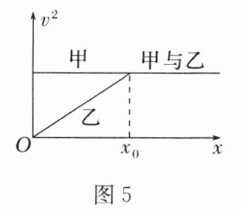 例4(2024·河北衡水中学模拟预测)甲、乙两物体做同向直线运动,计时开始时都位于坐标原点处,从计时开始两物体运动的v² - x图像(速度的平方与位移关系图像)如图5所示。已知乙做匀加速运动的加速度为a,根据图像所提供的信息,下列说法正确的是( )