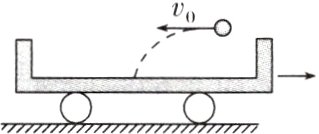 2. 如图所示,质量为0.5 kg的小球在距离车底面高为20 m处以一定的初速度向左平抛,落在以7.5 m/s速度沿光滑的水平面向右匀速行驶的敞篷小车中。车底涂有一层油泥,车与油泥的总质量为4 kg,设小球在落到车底前瞬间的速度大小是25 m/s,则当小球与小车相对静止时,小车的速度是($g$取10 m/s²) ( )
