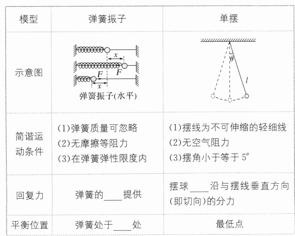 平衡位置 回复力 平衡位置 平衡位置 效果 合力 分力