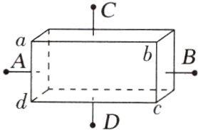 2. 如图所示,厚薄均匀的矩形金属薄片边长为$ab = 10 cm$,$bc = 5 cm$,当将$C$与$D$接入电压恒为$U$的电路时,电流为$2 A$,若将$A$与$B$接入电压恒为$U$的电路中,则电流为( )
