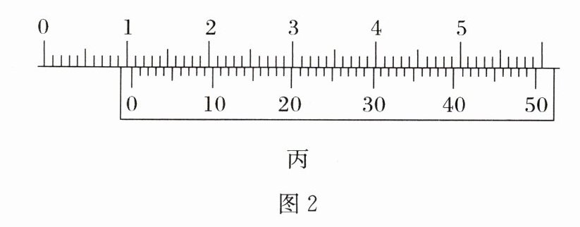 例1 如图2甲、乙、丙所示的三把游标卡尺,它们的游标尺分别为9 mm长10等分、19 mm长20等分、49 mm长50等分,它们的读数依次为______ mm、______ mm、______ mm。