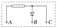 例5 如图9所示,电学实验室的“黑盒子”表面有A、B、C三个接线柱,盒内总共有两个电学元件(一只定值电阻和一只半导体二极管),每两个接线柱之间最多连接一个元件。为了探明盒内元件的连接方式,小华同学用多用电表进行了如下探测:用多用电表欧姆挡进行测量,把红、黑表笔分别与接线柱A、B、C连接,测量结果如表: