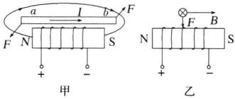 3. 一直导线平行于通电螺线管的轴线放置在螺线管的上方,如图9所示。如果直导线可以自由地运动且通以由$a$到$b$的电流,则导线$ab$受磁场力后的运动情况为 ( )