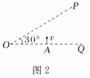 例2(多选)如图2所示,A点的离子源沿纸面垂直OQ方向向上射出一束负离子,离子的重力忽略不计。为把这束负离子约束在OP之下的区域,可加垂直纸面的匀强磁场。已知O、A两点间的距离为s,负离子的比荷为$\frac{q}{m}$,速率为v,OP与OQ间的夹角为30°,则所加匀强磁场的磁感应强度B的大小和方向可能是( )