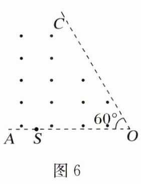 (多选)如图6所示,边界OA与OC之间存在磁感应强度为B的匀强磁场,磁场方向垂直纸面向外,∠AOC = 60°。边界OA上距O点l处有一粒子源S,可发射质量为m,带正电荷q的等速粒子。当S沿纸面向磁场各个方向发射粒子,发现都没有粒子从OC边界射出。则( )