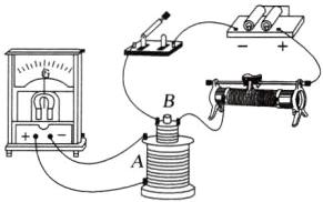 (4)连好电路,并将$B$线圈插入$A$线圈中。在闭合开关瞬间,发现灵敏电流表的指针向右偏了一下,若要使灵敏电流表的指针向左偏转,滑动变阻器的滑片应向______滑动。