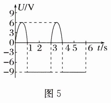 3. 如图5所示为一交流电压随时间变化的图像。每个周期内,前三分之一周期电压按正弦规律变化,后三分之二周期电压恒定。根据图中数据可得此交流电压的有效值为( )