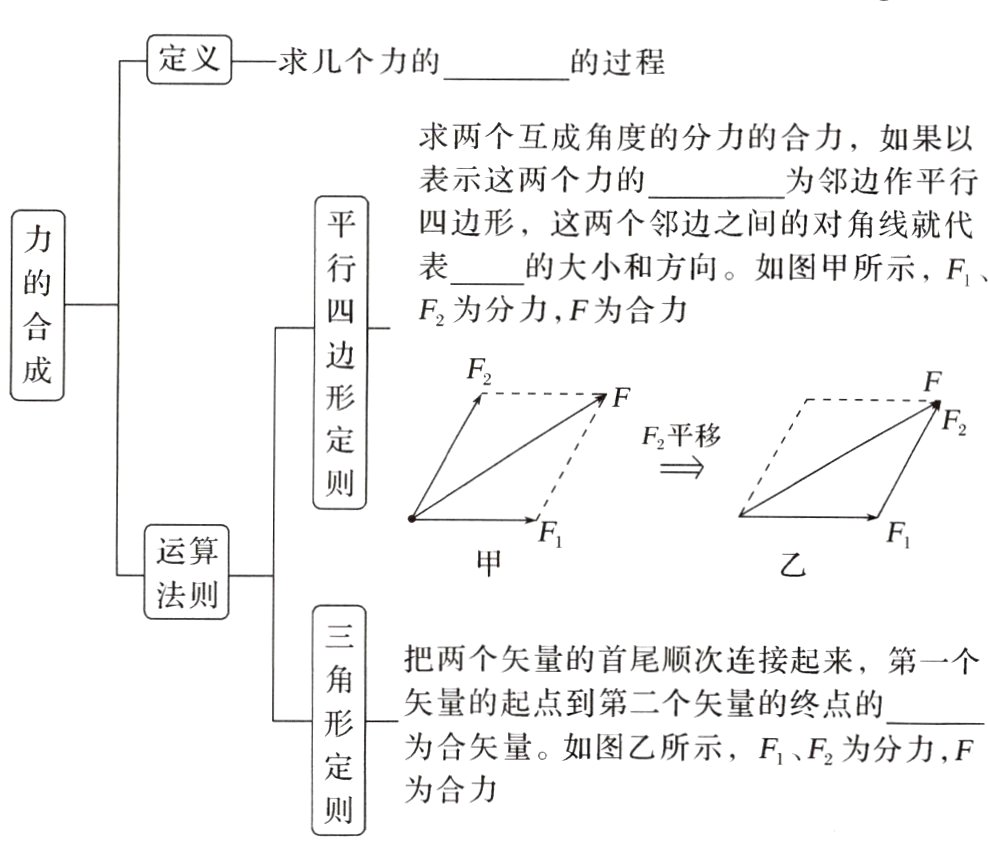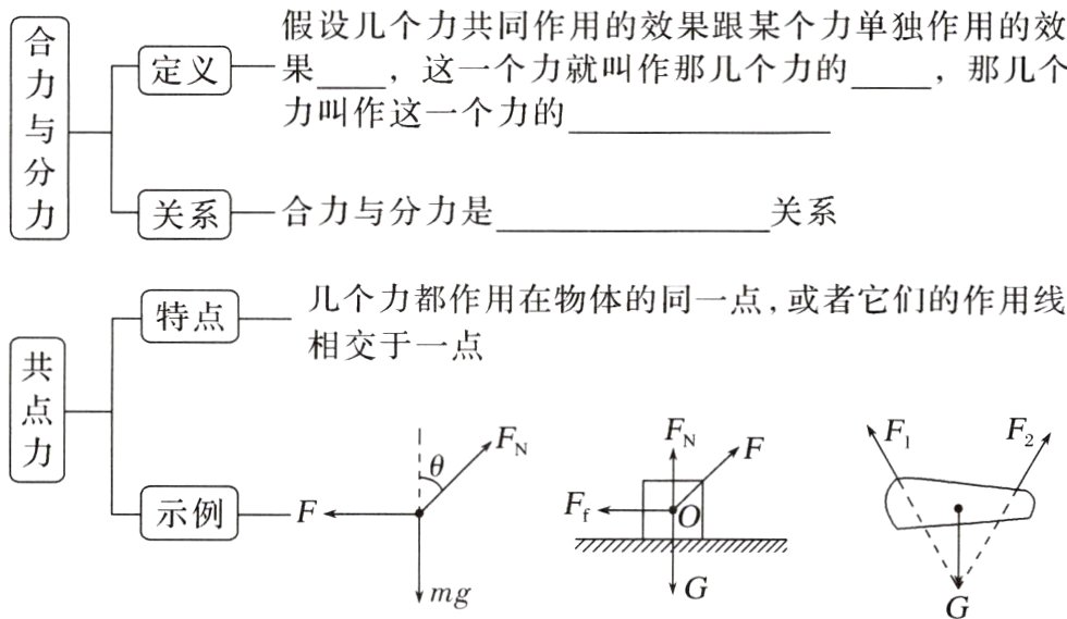 1,相同 合力 分力 等效替代 合力 有向线段 合力 有向线段