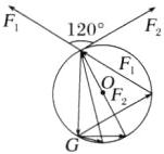以铅球为研究对象,受重力G、右手对铅球的弹力为F_{1}和左手对铅球的弹力为F_{2},受力分析如图所示,缓慢旋转过程中处于平衡状态,则将三力平移后构成一首尾相连的三角形,两手之间夹角保持60°不变,则两力之间的夹角保持120°不变,则在三角形中,F_{1}与F_{2}夹角保持60°不变,重力G的大小方向不变,作出力三角形的外接圆,根据弦所对的圆周角都相等,则右手由图示位置缓慢旋转60°至水平位置过程中力的三角形变化如图所示,分析可得F_{1}开始小于直径,当转过30°时F_{1}等于直径,再转时又小于直径,所以F_{1}先增大后减小,F_{2}开始就小于直径,转动过程中一直减小,选项B正确。
