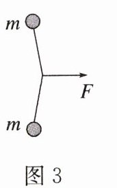 例3 (2022·全国乙卷,15)如图3所示,一不可伸长轻绳两端各连接一质量为m的小球,初始时整个系统静置于光滑水平桌面上,两球间的距离等于绳长L。一大小为F的水平恒力作用在轻绳的中点,方向与两球连线垂直。当两球运动至二者相距$\frac{3}{5}L$时,它们加速度的大小均为( )