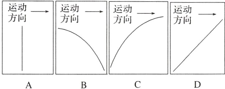 例2(2023·江苏卷,10)达·芬奇的手稿中描述了这样一个实验:一个罐子在空中沿水平直线向右做匀加速运动,沿途连续漏出沙子。若不计空气阻力,则下列图中能反映空中沙子排列的几何图形是( )