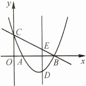 7.如图,抛物线$y=x^{2}-3x+\frac{5}{4}$与$x$轴交于$A,B$两点,与$y$轴交于点$C$,点$D$是直线$BC$下方抛物线上一点,过点$D$作$y$轴的平行线,与直线$BC$相交于点$E$.
