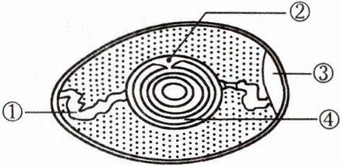4.(2024·江西)“小燕子,穿花衣,年年春天来这里……”儿歌中的小燕子每年飞回繁殖地产卵,产出的受精鸟卵(如图)能孵化成雏燕的部位是 ( )