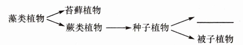 【解析】最先出现的植物类群是甲,为原始的藻类植物,多是水生植物;乙为原始的苔藓植物,丙为原始的蕨类植物,都是由甲进化而来的;丁、戊是由丙进化而来的,结构比丙复杂,丁和戊较高等,多是陆生植物。