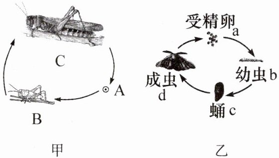 - 图甲所示昆虫的个体发育属于_______,属于这种发育类型的昆虫还有_______(填一种)。
