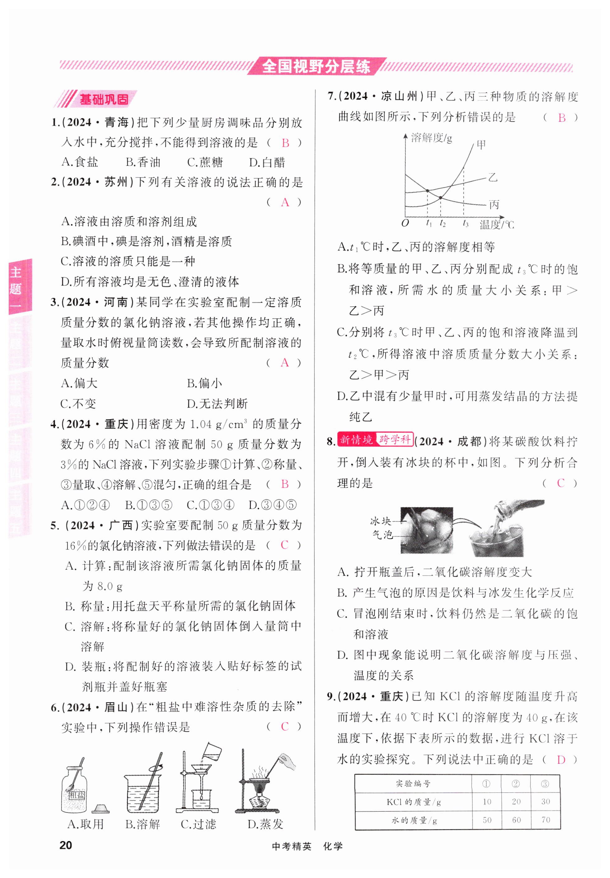 注:目前有些书本章节名称可能整理的还不是很完善,但都是按照顺序排列的,请同学们按照顺序仔细查找。练习册 2025年黄冈金牌之路中考精英总复习化学四川专版 答案主要是用来给同学们做完题方便对答案用的,请勿直接抄袭。
