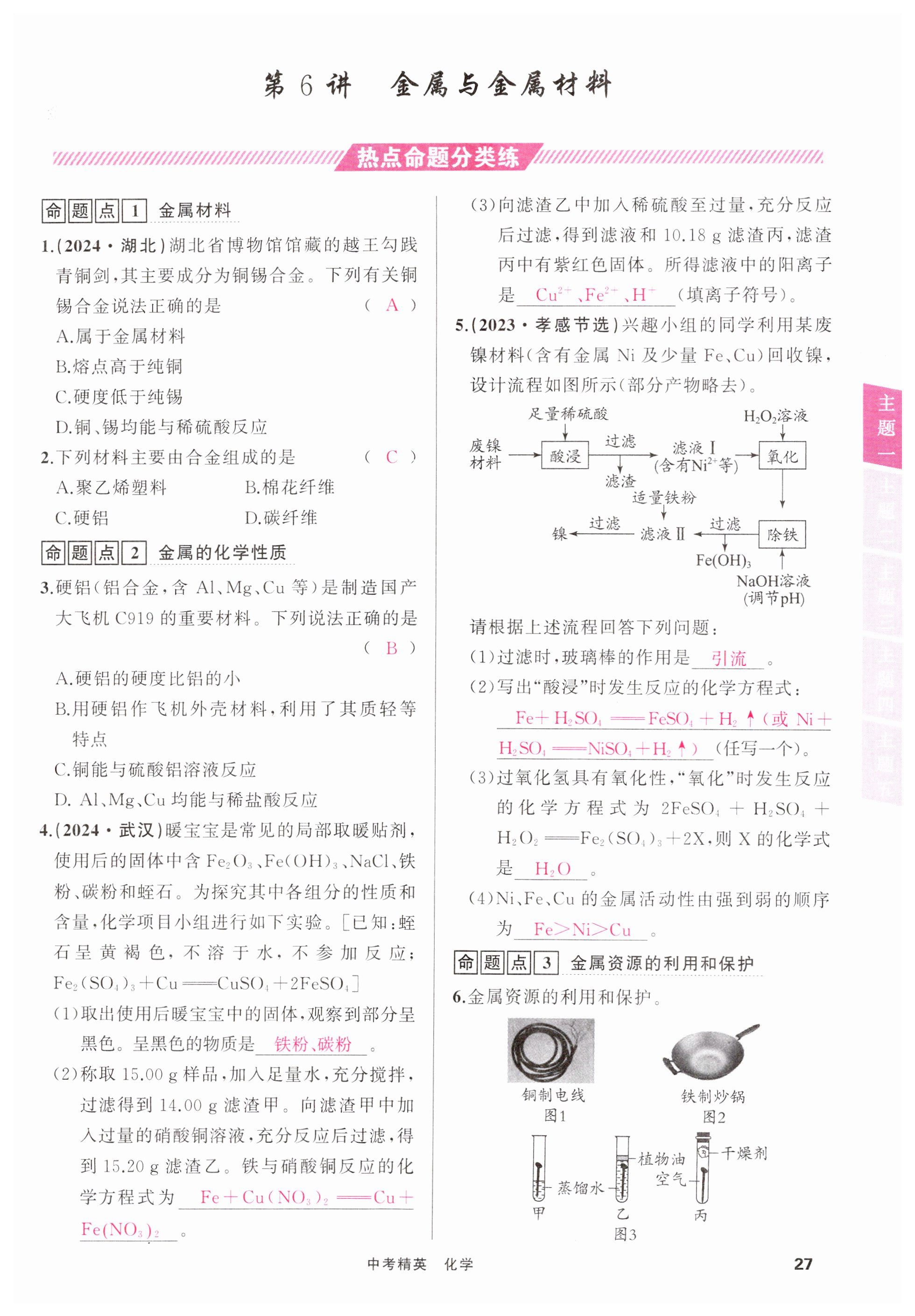 注:目前有些书本章节名称可能整理的还不是很完善,但都是按照顺序排列的,请同学们按照顺序仔细查找。练习册 2025年黄冈金牌之路中考精英总复习化学四川专版 答案主要是用来给同学们做完题方便对答案用的,请勿直接抄袭。