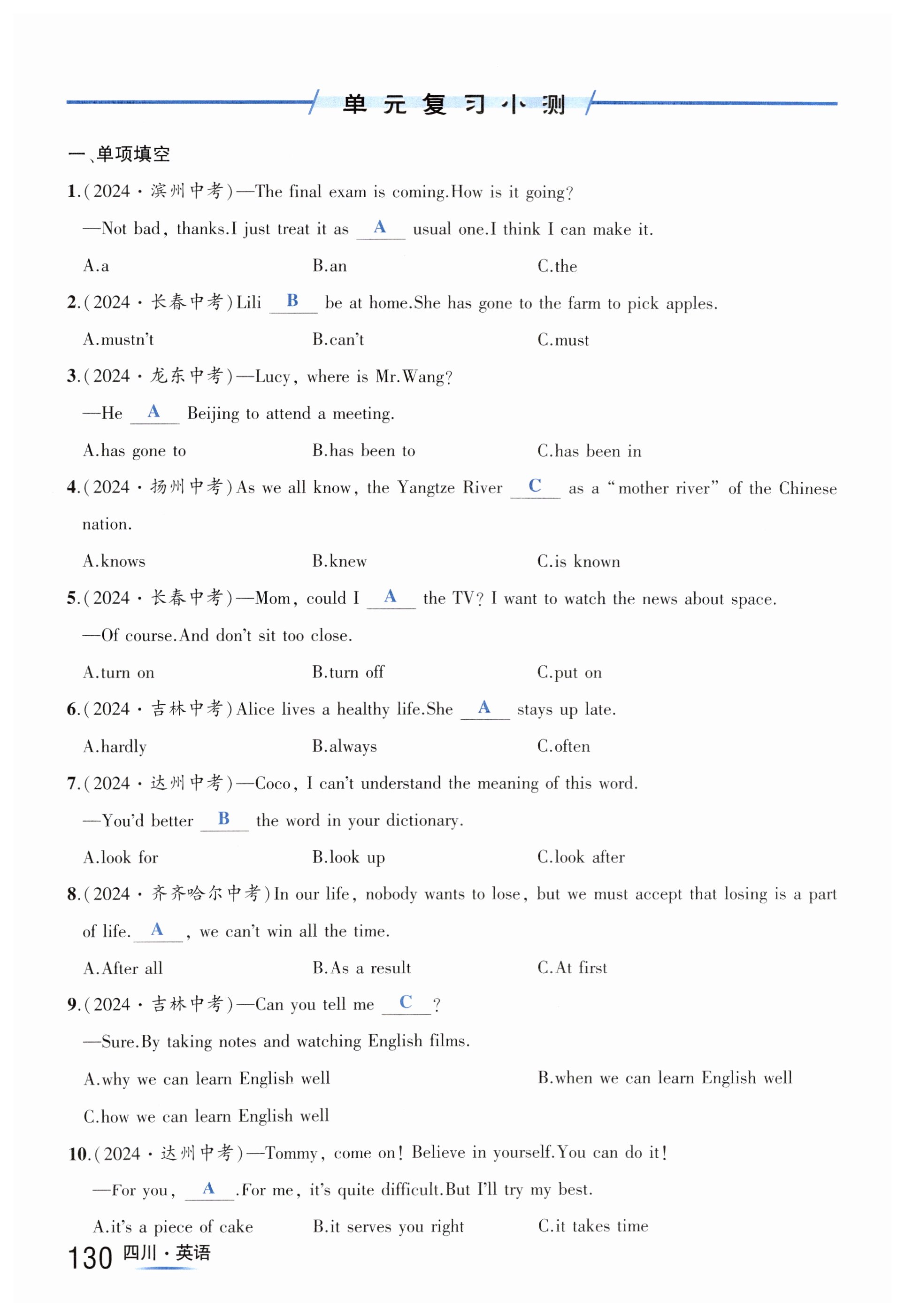 注:目前有些书本章节名称可能整理的还不是很完善,但都是按照顺序排列的,请同学们按照顺序仔细查找。练习册 2025年中考2号英语四川专版 答案主要是用来给同学们做完题方便对答案用的,请勿直接抄袭。