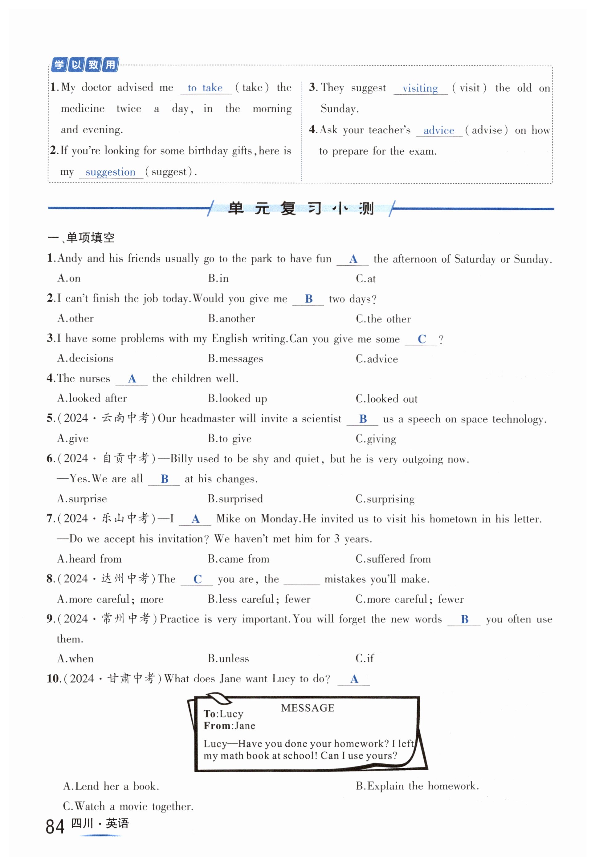注:目前有些书本章节名称可能整理的还不是很完善,但都是按照顺序排列的,请同学们按照顺序仔细查找。练习册 2025年中考2号英语四川专版 答案主要是用来给同学们做完题方便对答案用的,请勿直接抄袭。