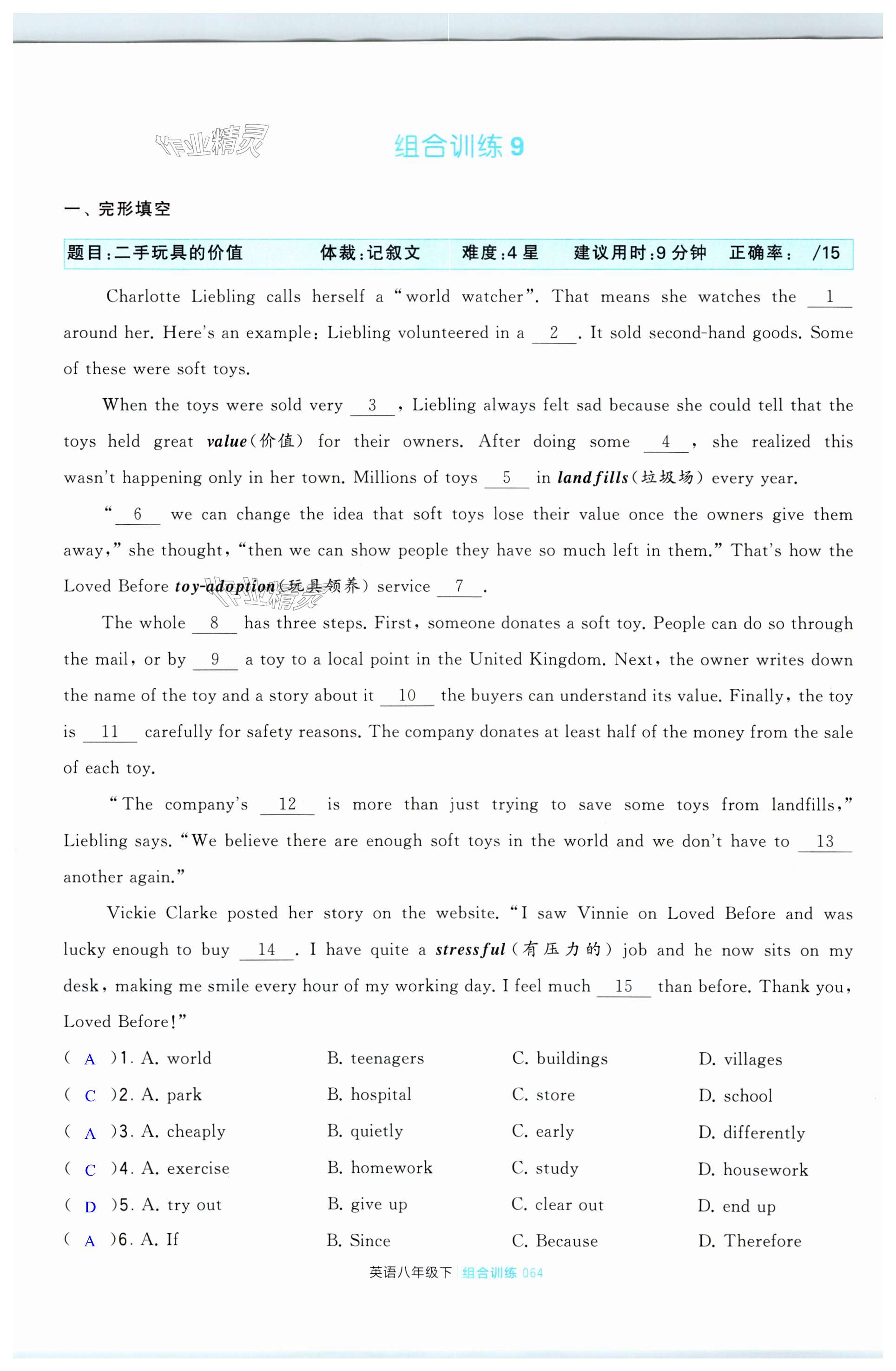 注:目前有些书本章节名称可能整理的还不是很完善,但都是按照顺序排列的,请同学们按照顺序仔细查找。练习册 2025年学霸组合训练八年级英语下册译林版 答案主要是用来给同学们做完题方便对答案用的,请勿直接抄袭。