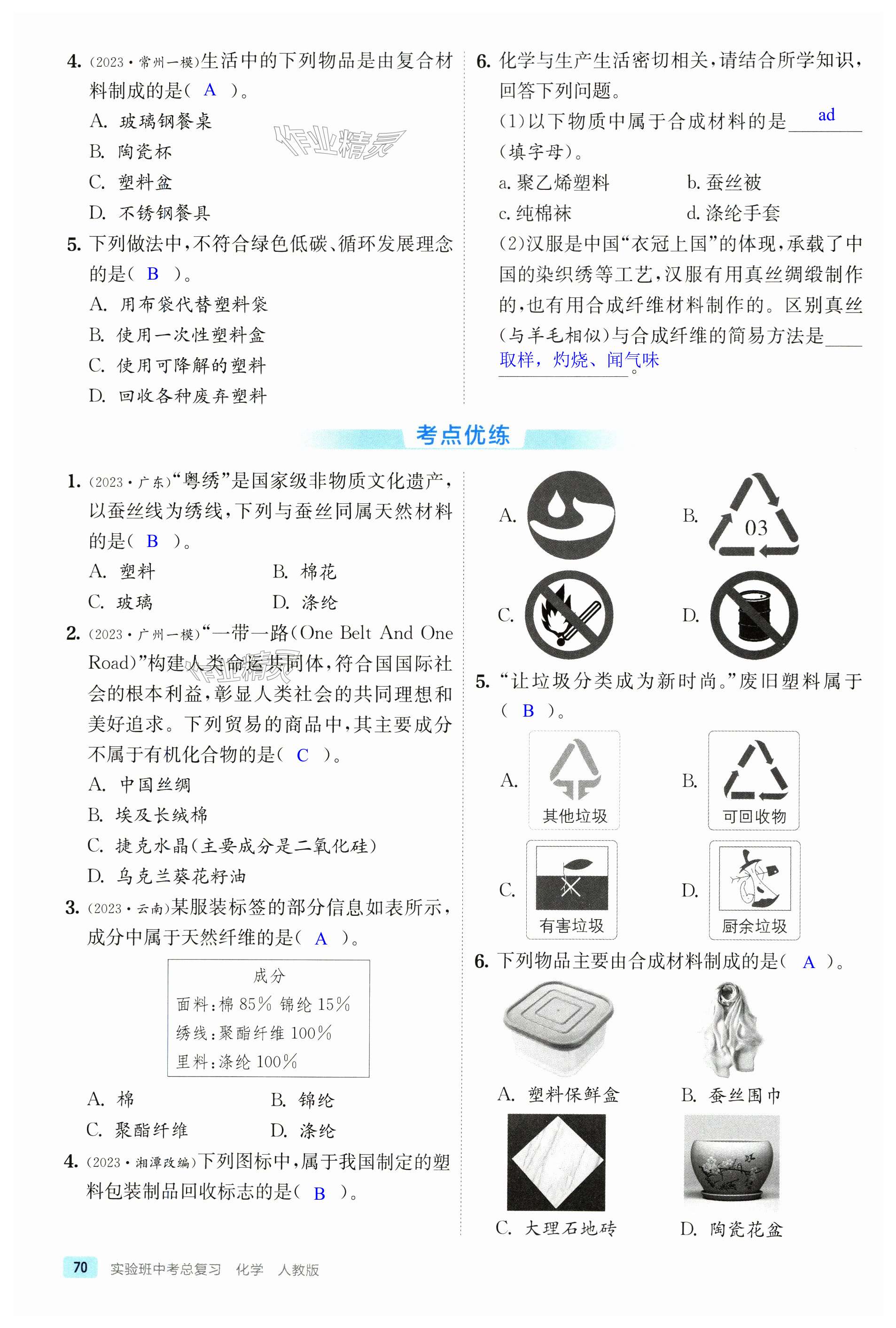 注:目前有些书本章节名称可能整理的还不是很完善,但都是按照顺序排列的,请同学们按照顺序仔细查找。练习册 2025年实验班中考总复习化学江苏专版 答案主要是用来给同学们做完题方便对答案用的,请勿直接抄袭。