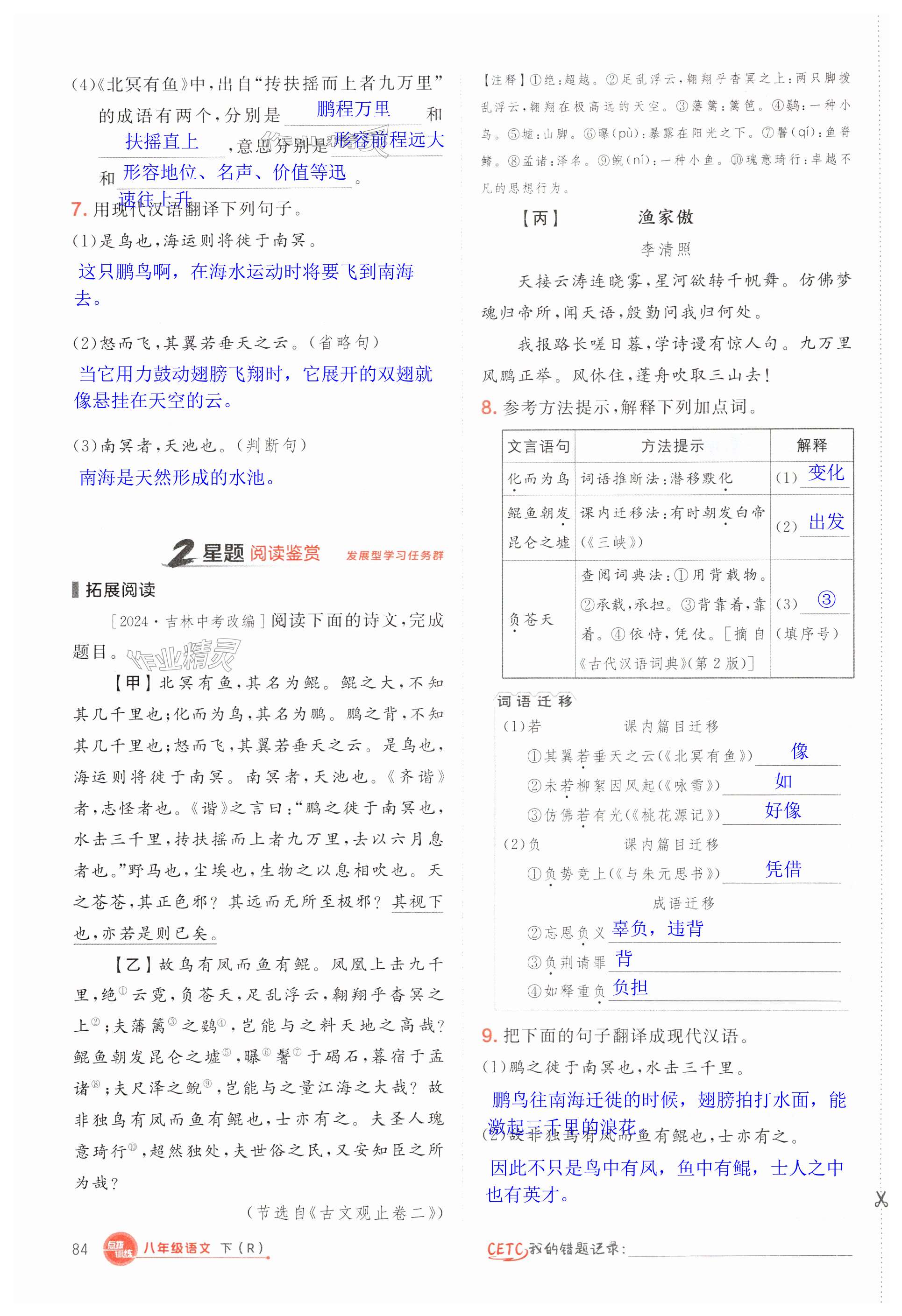 注:目前有些书本章节名称可能整理的还不是很完善,但都是按照顺序排列的,请同学们按照顺序仔细查找。练习册 2025年点拨训练八年级语文下册人教版 答案主要是用来给同学们做完题方便对答案用的,请勿直接抄袭。